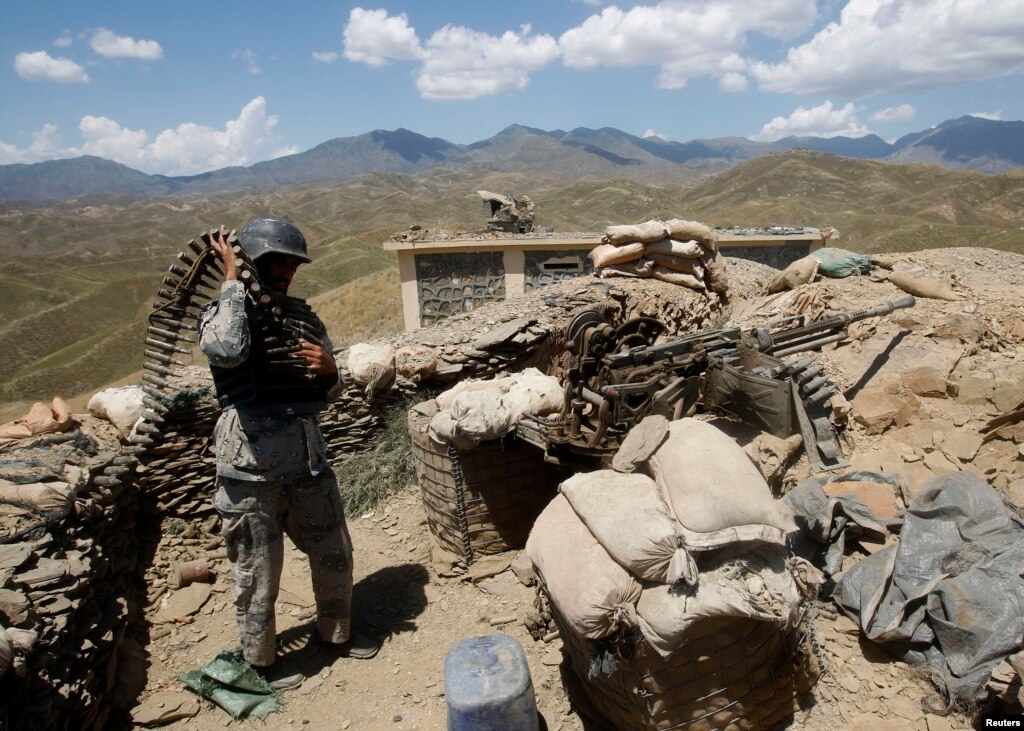- An Afghan border policeman prepares ammunition at a check post at the
