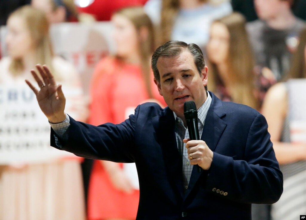 Republican presidential candidate, Sen. Ted Cruz, R-Texas, speaks at Woodrow Wilson Middle School, April 24, 2016, in Terre Haute, Ind.